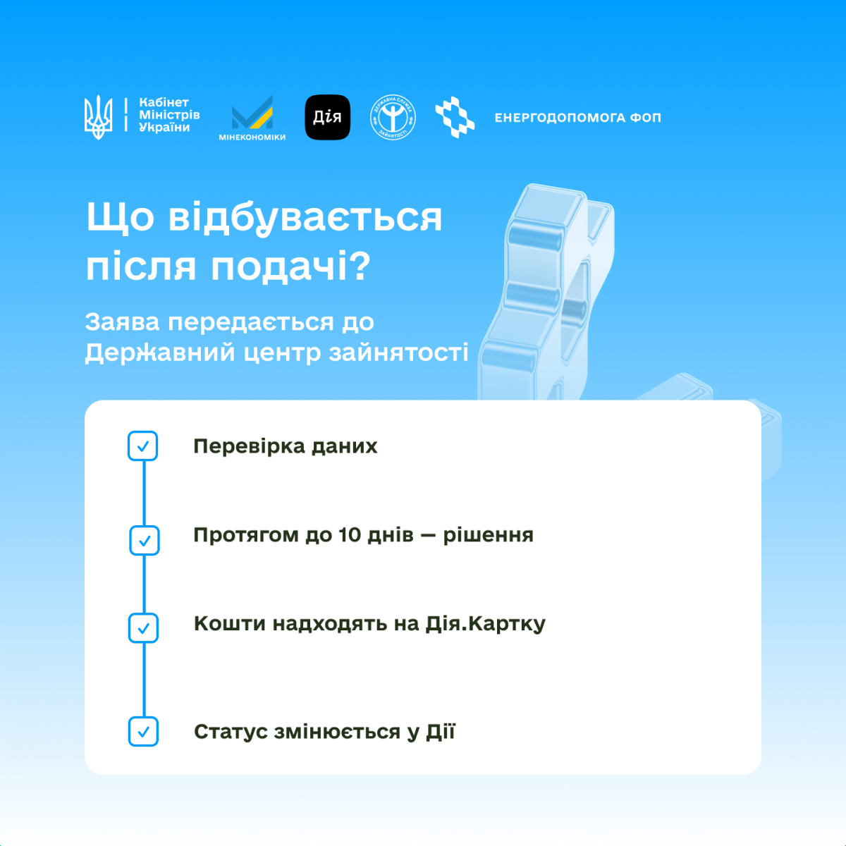Щоб подати заяву перейдіть за посиланням: https://diia.gov.ua/services/dopomoha-fop-na-enerhostiikist?fbclid=IwY2xjawPwFrZleHRuA2FlbQIxMABicmlkETF4WGNEdW5maDJGUU9uS1phc3J0YwZhcHBfaWQQMjIyMDM5MTc4ODIwMDg5MgABHhj_9Ns3x4iBefniELR9D8XoPhNCyilz3XPuYjMQsijtNKIZ0VyMfqcIY-l7_aem_TPjN-MszQlvuOZEODUrMcA