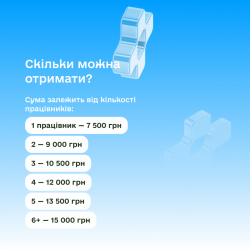 Розмір виплати становить від 7 500 до 15 000 гривень – сума залежить від кількості найманих працівників. Про це інформує прем’єр-міністерка України Юлія Свириденко.