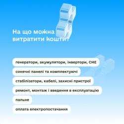 придбання або ремонт генераторів та іншого енергообладнання;